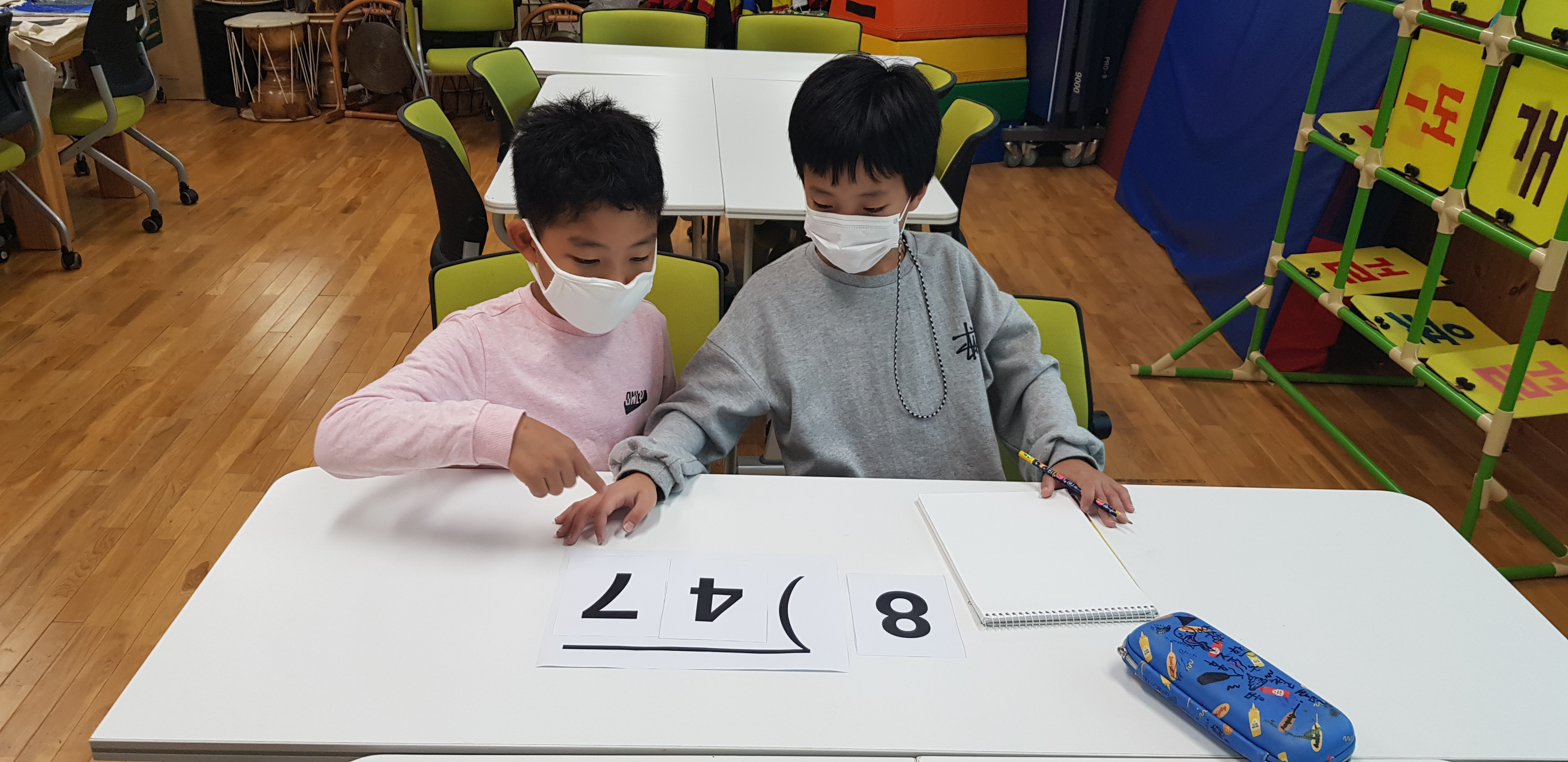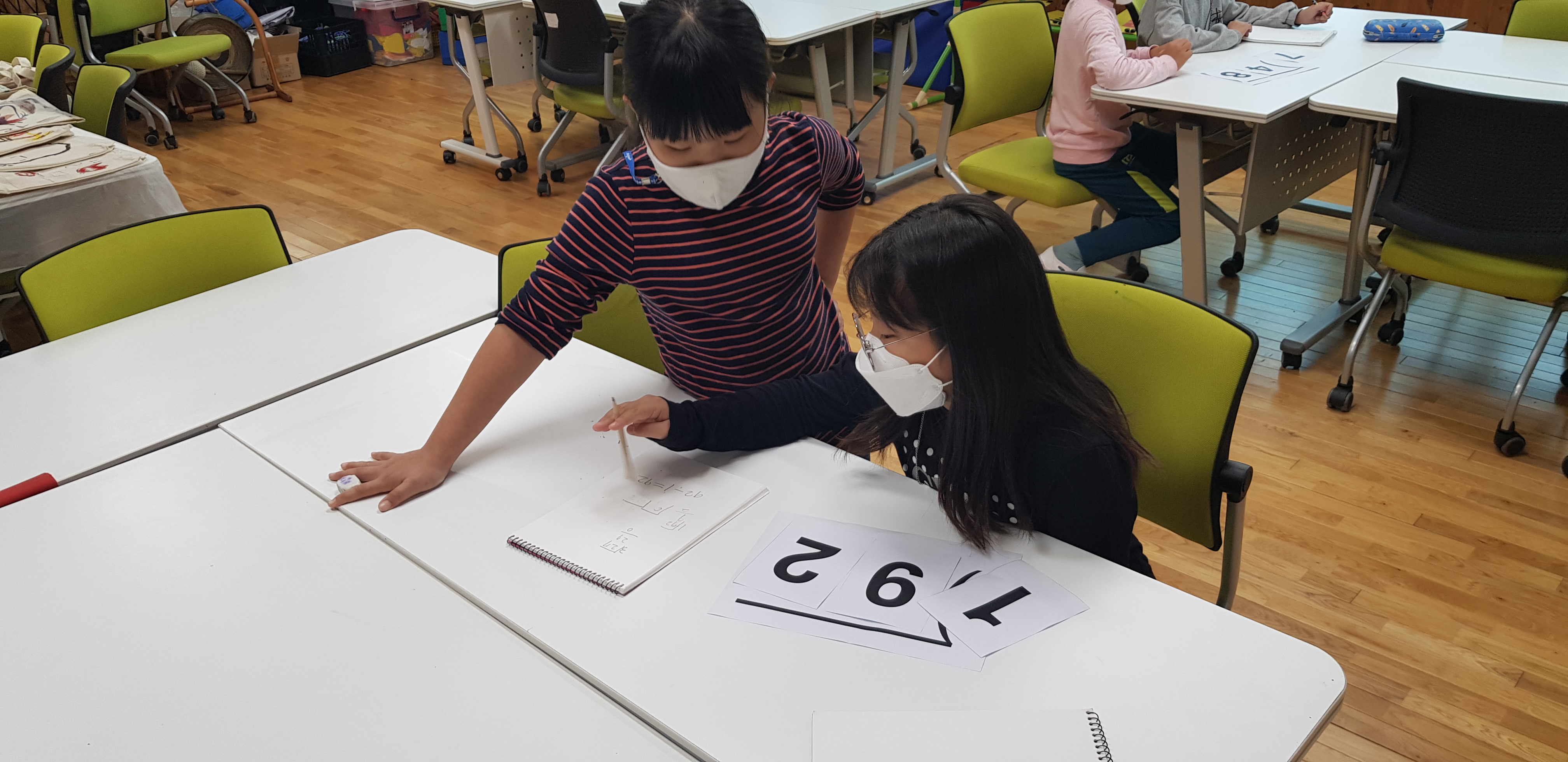 -획득한 숫자카드를 조합하여 나머지가 제일 적게 나올 수 있도록 나눗셈 식 만들기^^ -기특한 우리반 아이들이 두 팀 모두 나머지를 0으로 만들었습니다.^^