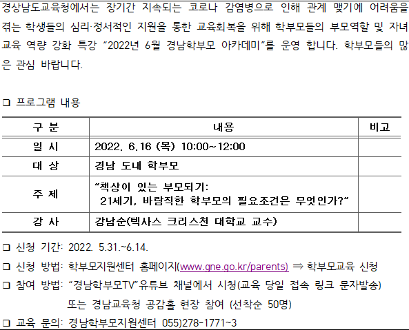 2022년 6월 경남학부모 아카데미 신청 안내